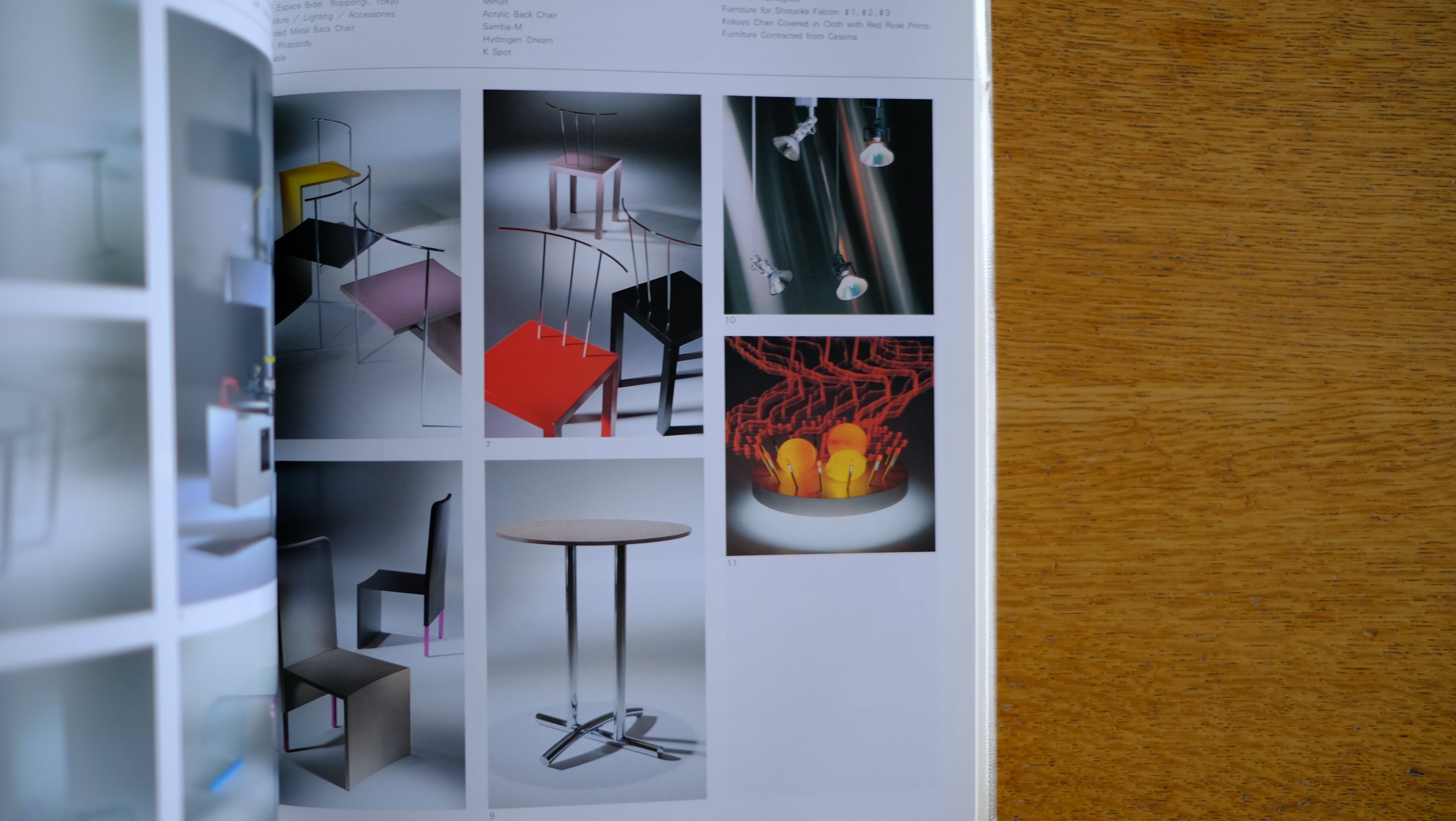 「ミス・ブランチ」「硝子の椅子」をはじめ、1960年代から1991年までの仕事を網羅。年表形式でデザインの歩みを整理し、倉俣本人の言葉も随所に引用。